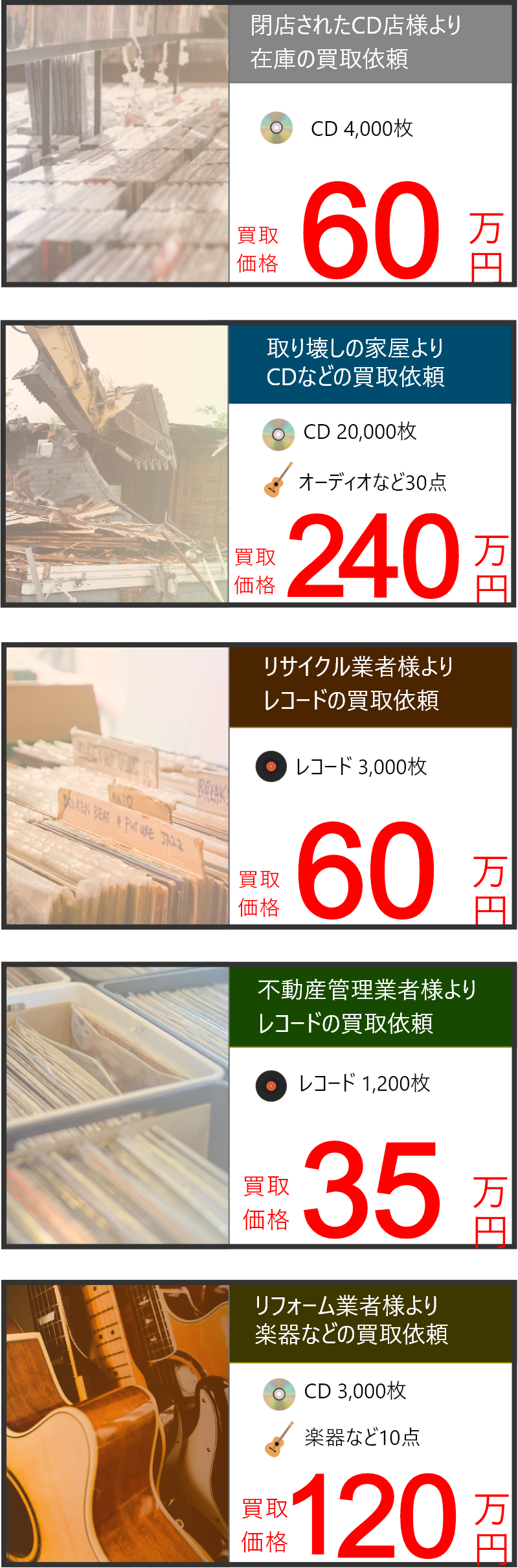 眠っている音楽を新しいオーナーに届け、古い物に新たな生命を吹き込むことを業務とし、最も必要とされる優良買取業者になることを目標としています。